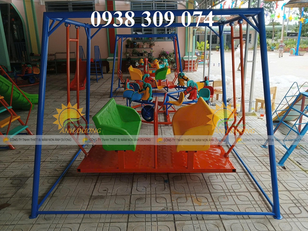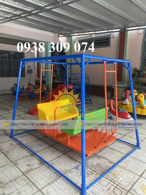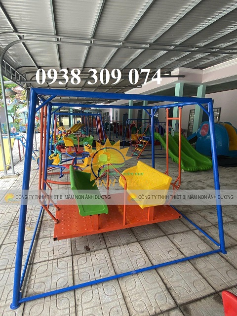 Gồm liên hoàn xích đu cầu trượt, 2 khối xích đu với dạng ghế ngồi khác nhau. Tạo sự thích thú với